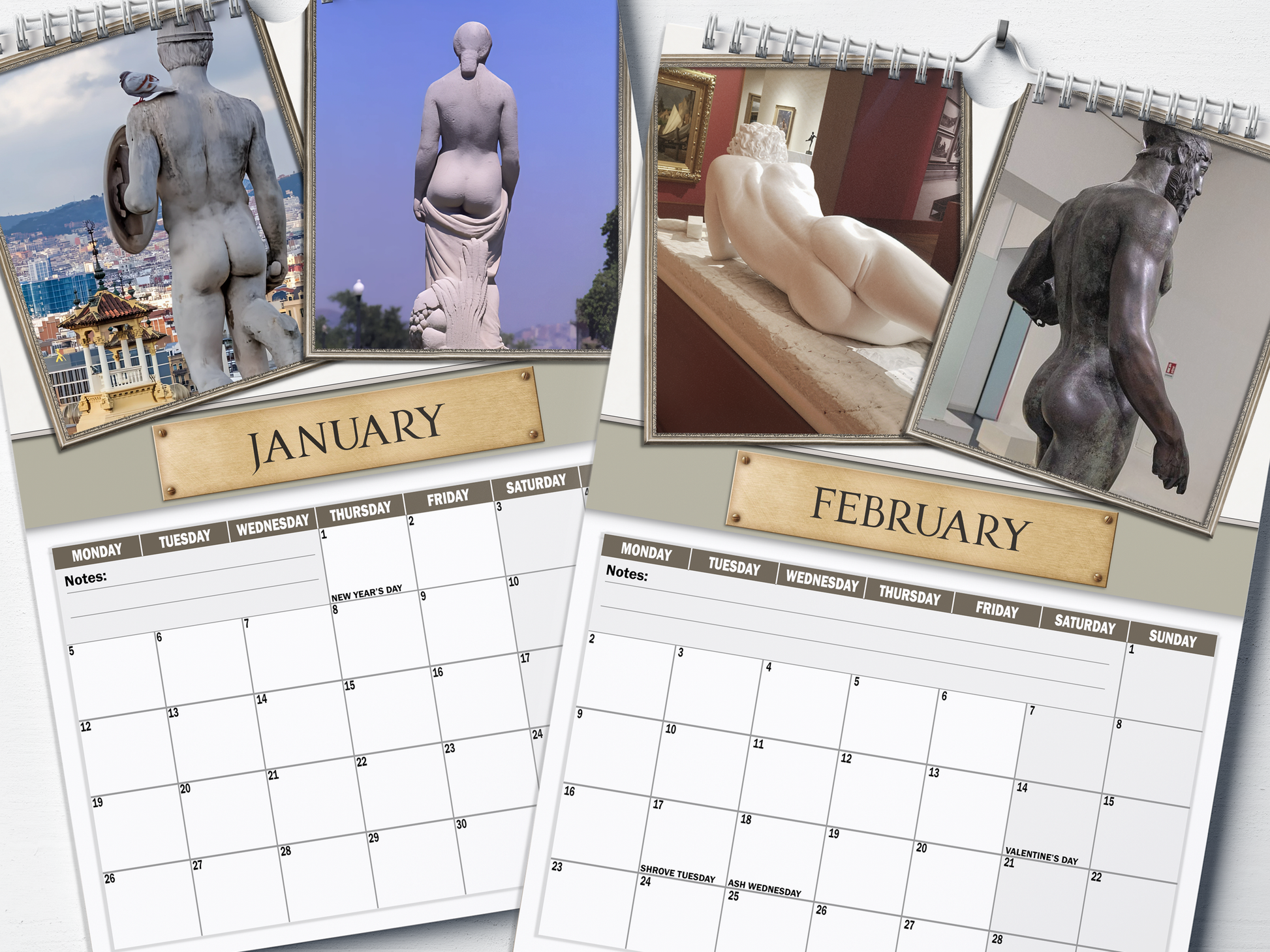 Perfect for fans of mythology, history enthusiasts, or anyone who enjoys a good laugh, the 'Greek Cheeks' calendar also makes for an excellent gift. Whether it's for a birthday, holiday, or just because, this calendar is sure to delight and amuse.