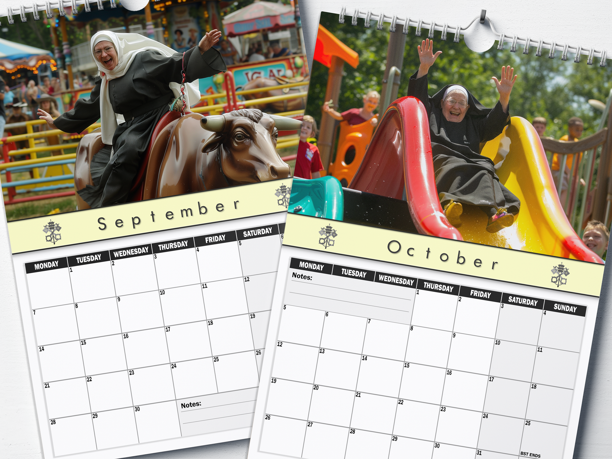 Perfect for fans of humorous art, novelty decor enthusiasts, or anyone who enjoys a good laugh, the 'Naughty Nuns' calendar also makes for an excellent gift. Whether it's for a birthday, holiday, or just because, this calendar is sure to delight and amuse.