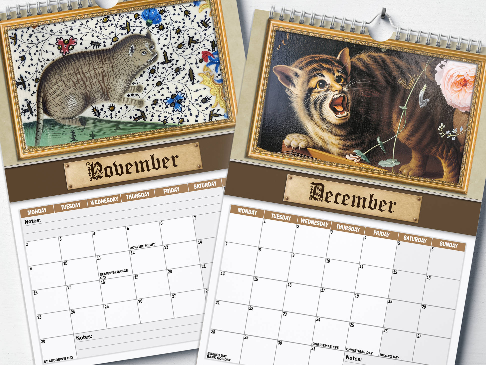 Renaissance Cats – 2026 A4 Wall Calendar | Hilarious Historical Feline Art for Every Month